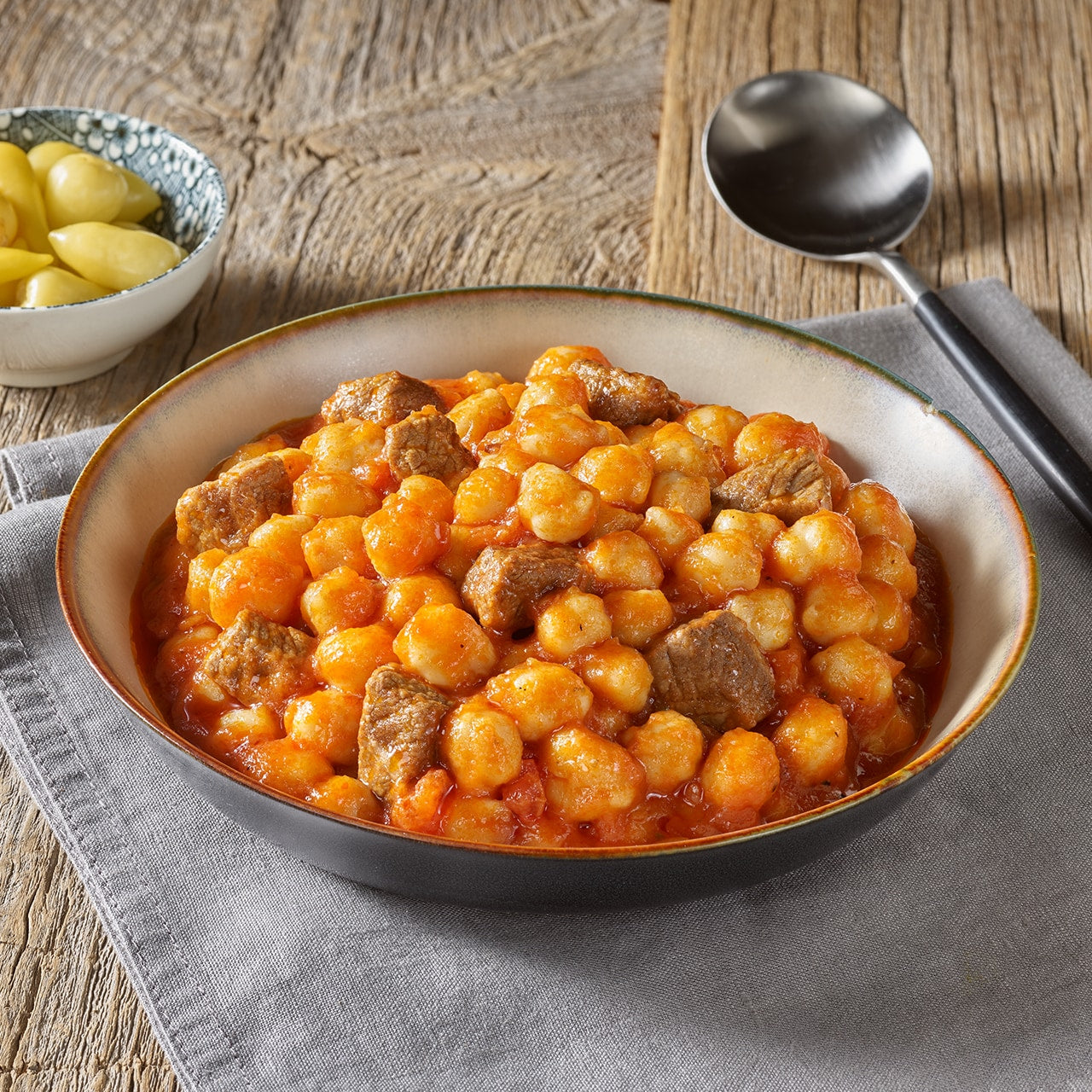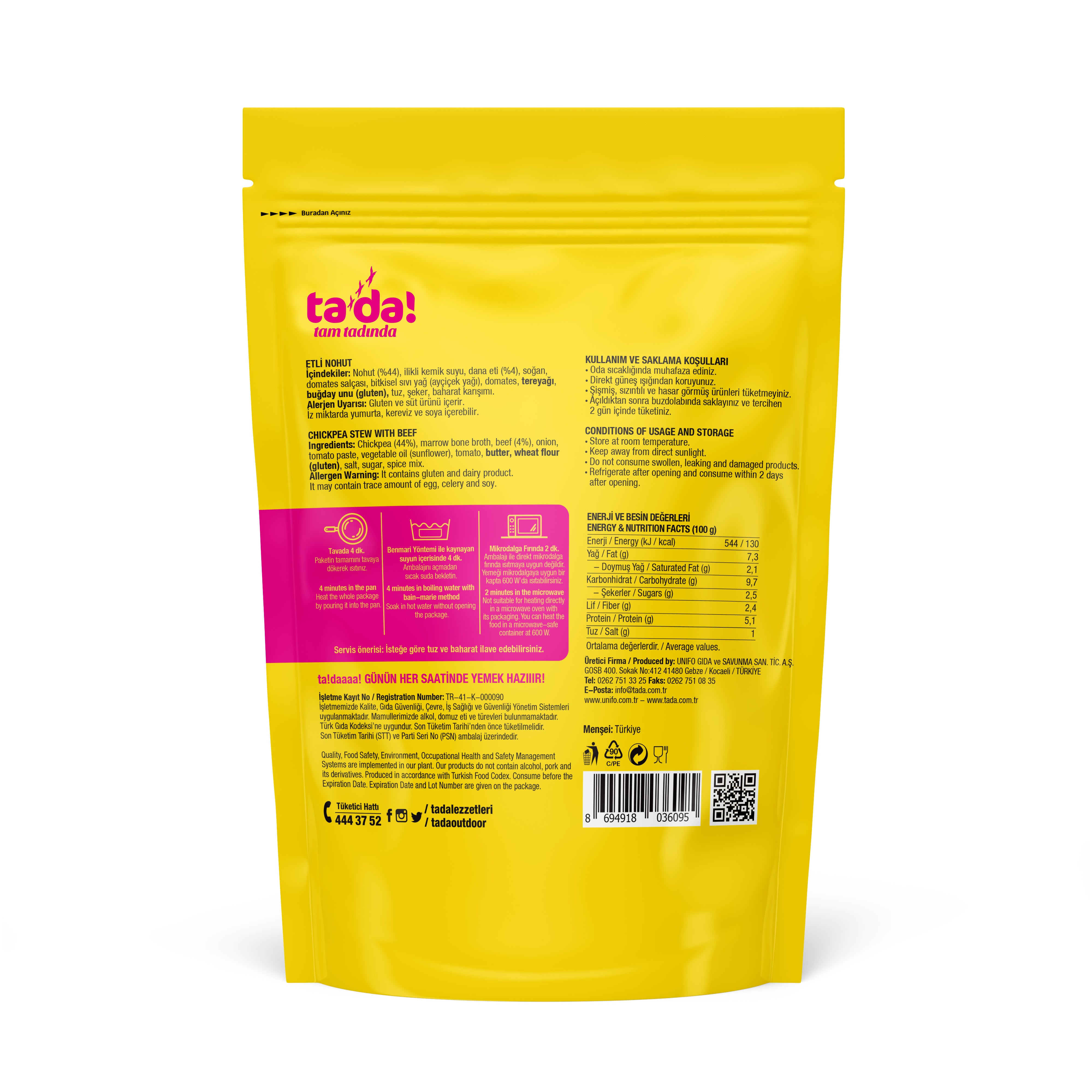 İçindekiler : Nohut (%44), ilikli kemik suyu, dana eti (%4), soğan, domates salçası, bitkisel sıvı yağ (ayçiçek yağı), domates, tereyağı, buğday unu, tuz, şeker, baharat karışımı.