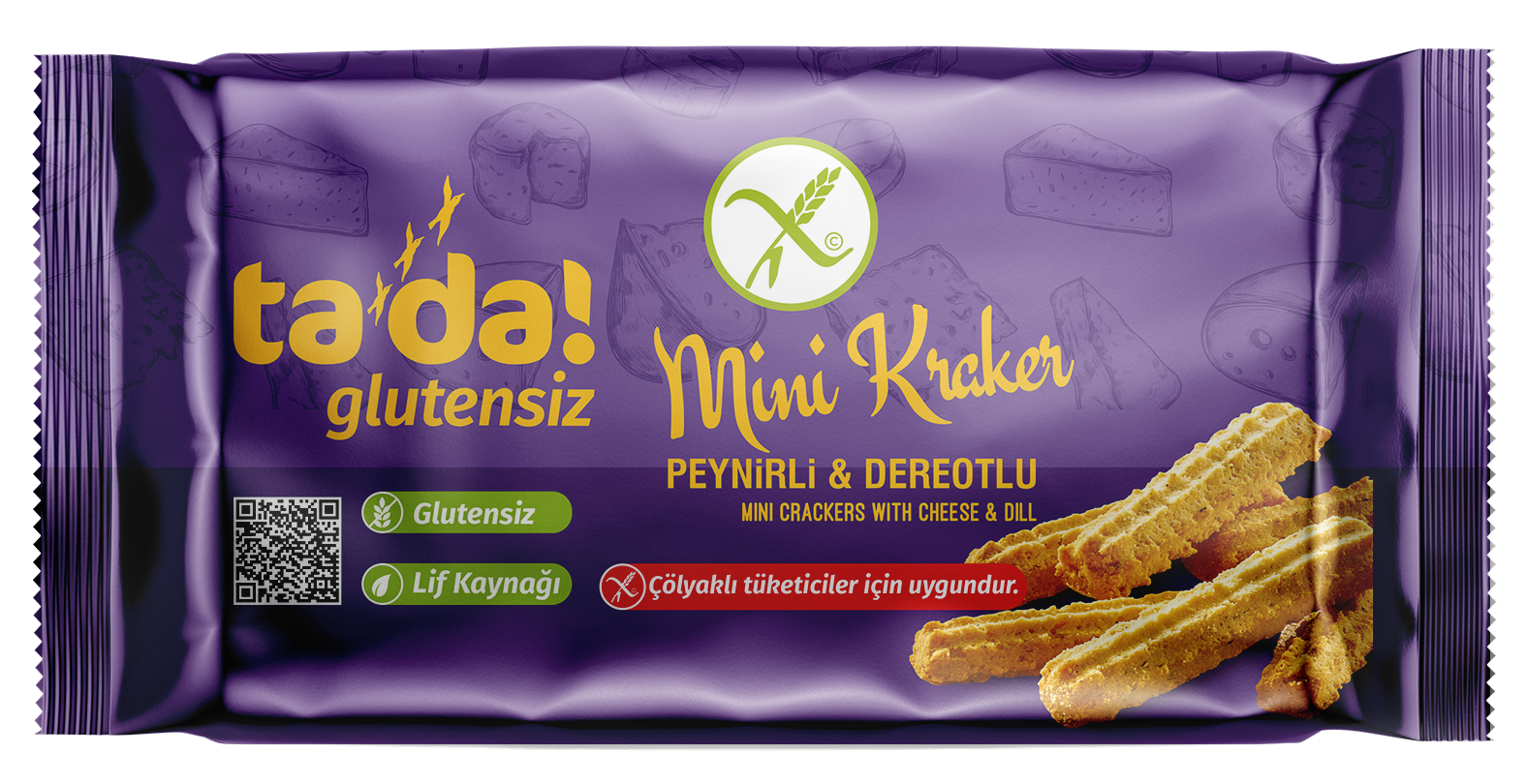 Zengin çeşitleri ile tada! Glutensiz Atıştırmalıklar glutensiz beslenenlerin vazgeçilmezi olacak. Peynirin dereotu ile mükemmel uyumu çıtır çıtır bir lezzet olarak Glutensiz Peynirli Dereotlu Mini Krakerde birleşti. Glutensiz beslenenler için günün her saati pratik ve lezzetli bir atıştırmalık alternatifi olacak. Tek başına tüketilebilen glutensiz gevrekler, peynir tabaklarının, çeşitli diplerin, çorbaların, sosların yanında da fark yaratacaktır.